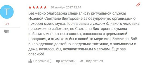 Девушка, 25 лет. Доход 100 000 рублей. Владелица магазина брендовой одежды. Образование высшее. Не знакома с услугами, трагедия случается впервые. Воспользуется интернетом для поиска ритуальных услуг, важным моментом будет оказание психологической поддержки, готова заплатить большую сумму за лучшее обслуживание. Также может выступать в роли помощника для родственника или друга, у которого случилась трагедия.