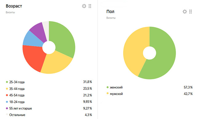 Ядро целевой аудитории составляют мужчины и женщины старше 25 лет, имеющие разный уровень дохода. Так как аудитория достаточно обширна, поделим на сегменты, чтобы лучше понимать потребности и проблемы целевой аудитории. Для этого воспользуемся Яндекс.Метрикой.