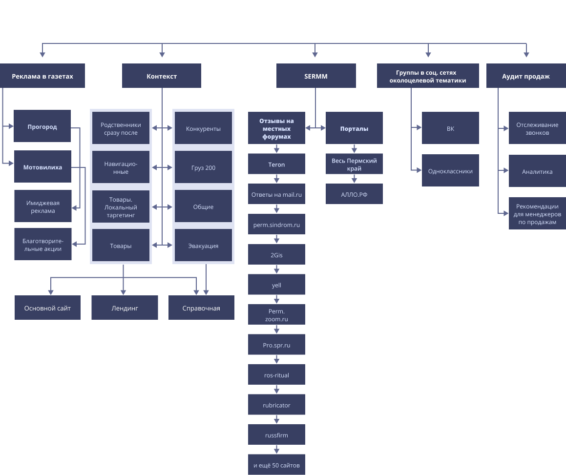 В ритуальные бюро клиенты чаще всего приходят по рекомендациям или узнав о них случайно. Таким образом, поставщик услуг должен уделять первоочередное внимание эффективному взаимодействию с потребителем. Оно, в свою очередь, зависит от навыков персонала, а также от технологии производства и сопутствующих процессов, помогающих сотрудникам в предоставлении услуги. Преуспевающие компании концентрируют внимание одновременно как на своих служащих, так и на покупателях. Обращаем внимание читателя на то, что это неполный список возможных сегментов и аватаров к ним. В данную статью мы лишь для примера и описания схемы работы включили описание нескольких персонажей.