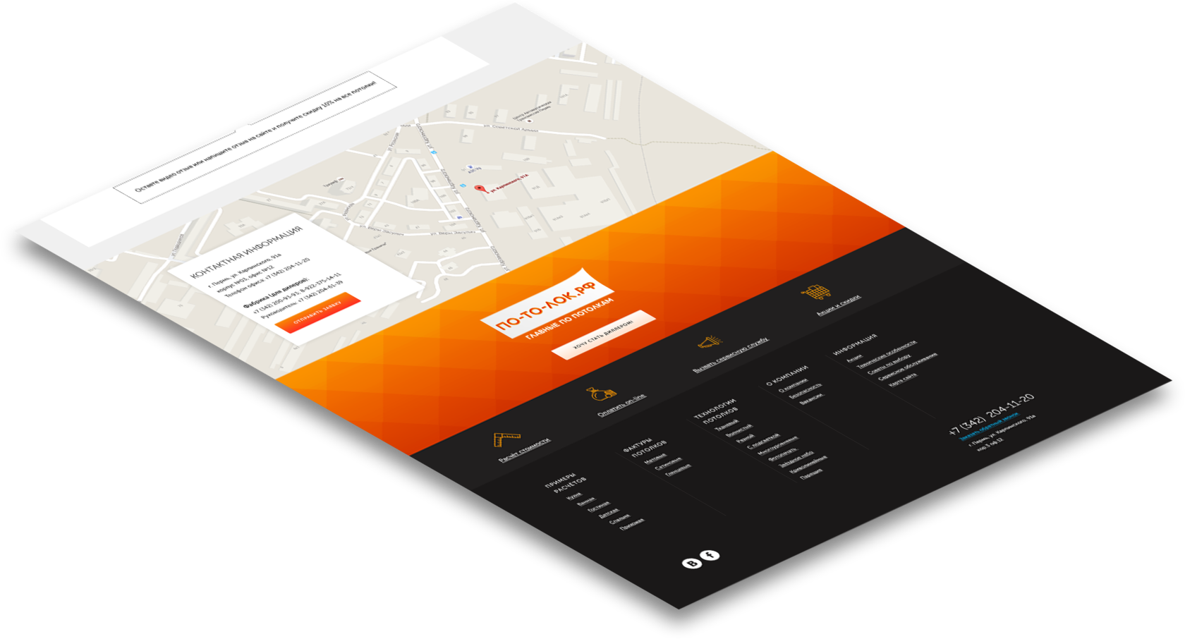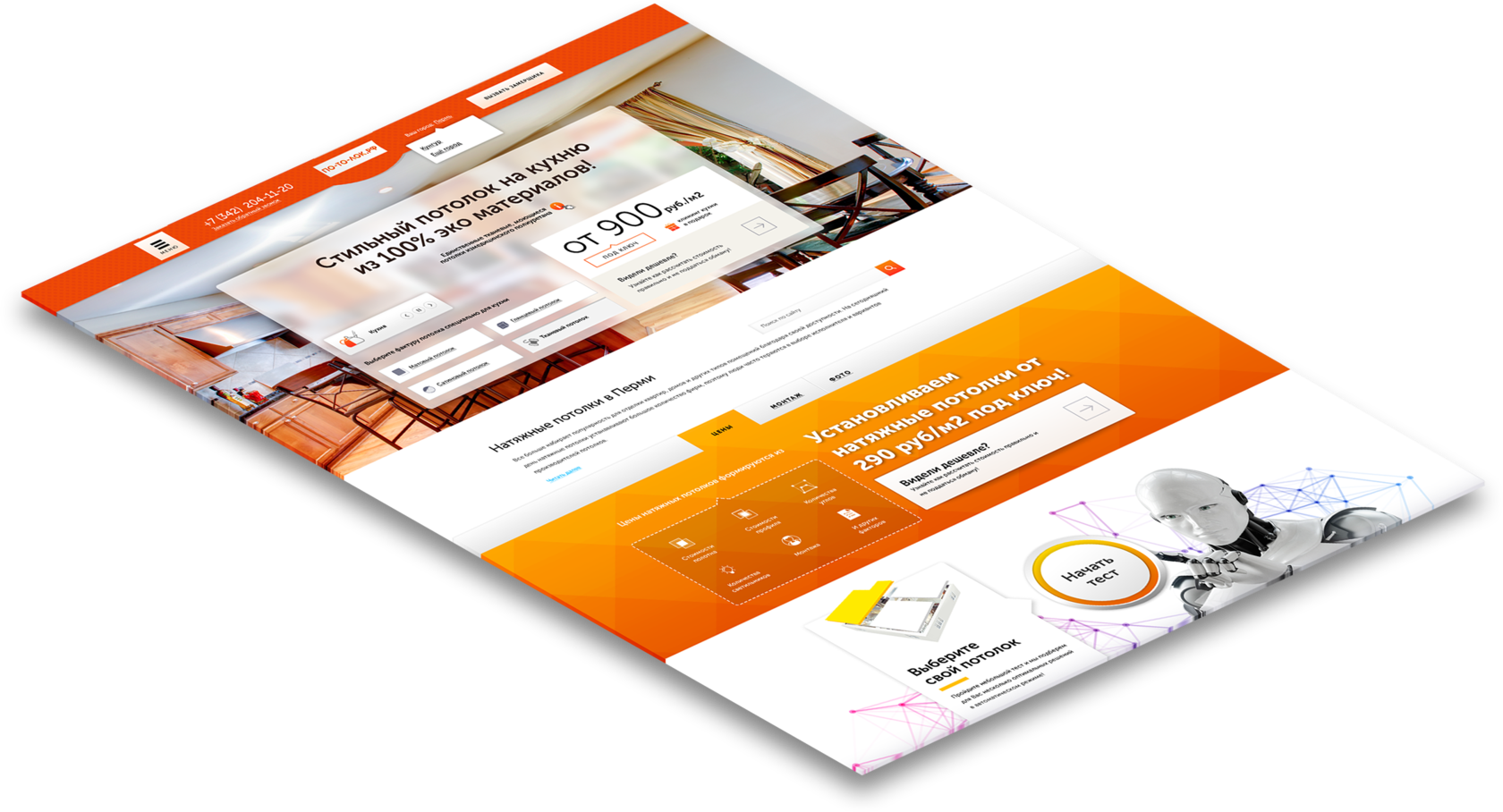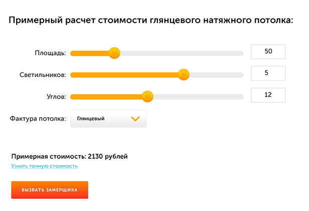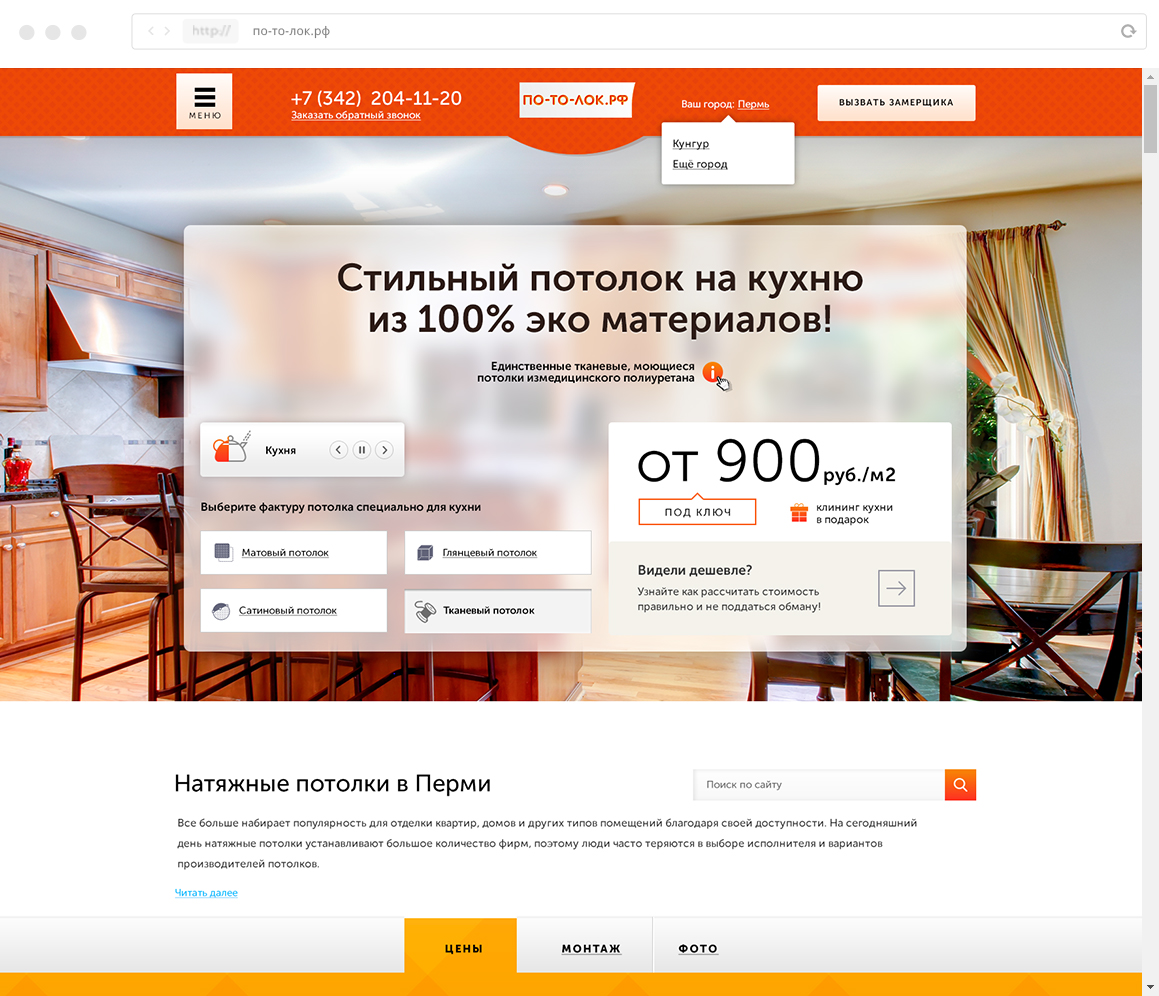 Определили "боли" каждого сегмента, разработали уникальный оффер (продающий заголовок) на каждый вид потолка. Выделили и описали преимущества по каждому виду потолка в наглядной форме с помощью специально разработанных иконок.